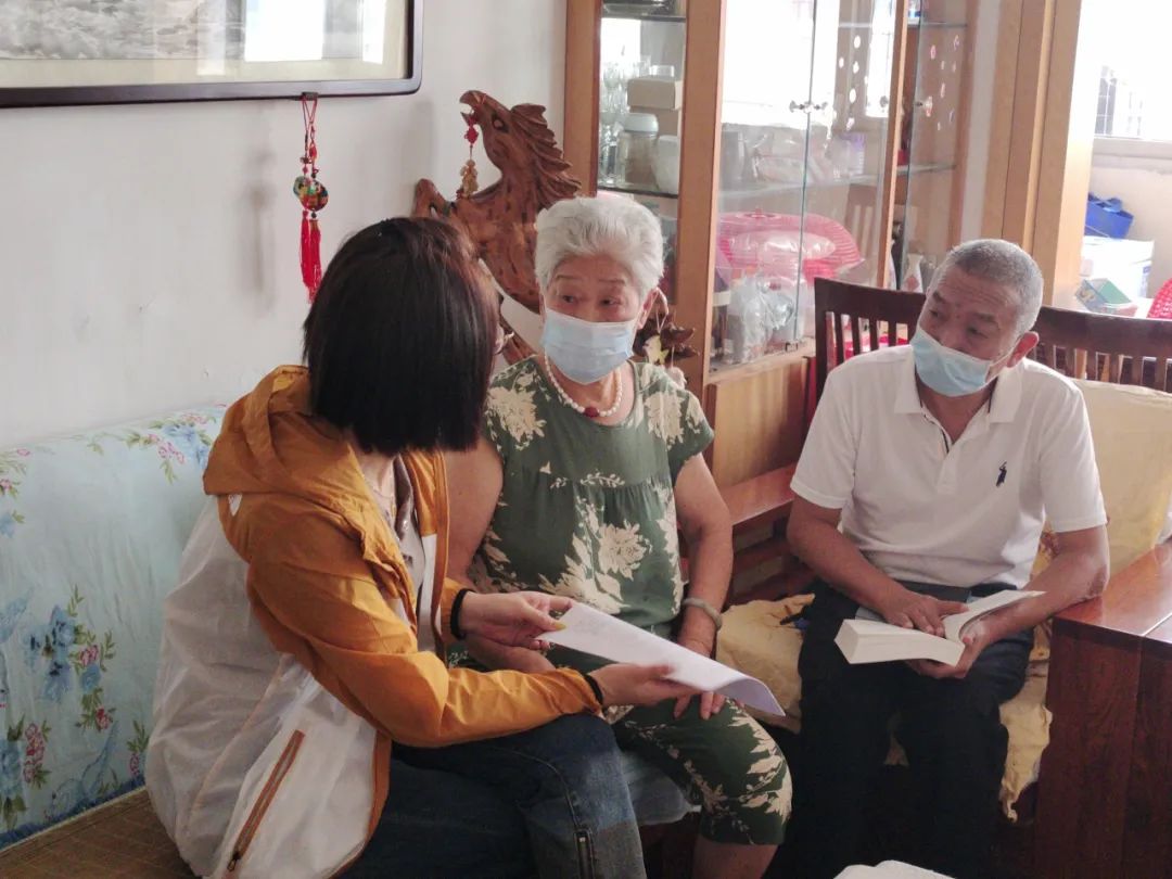 ▲陈燕湘(右一)上门陪孤寡老人聊天解闷