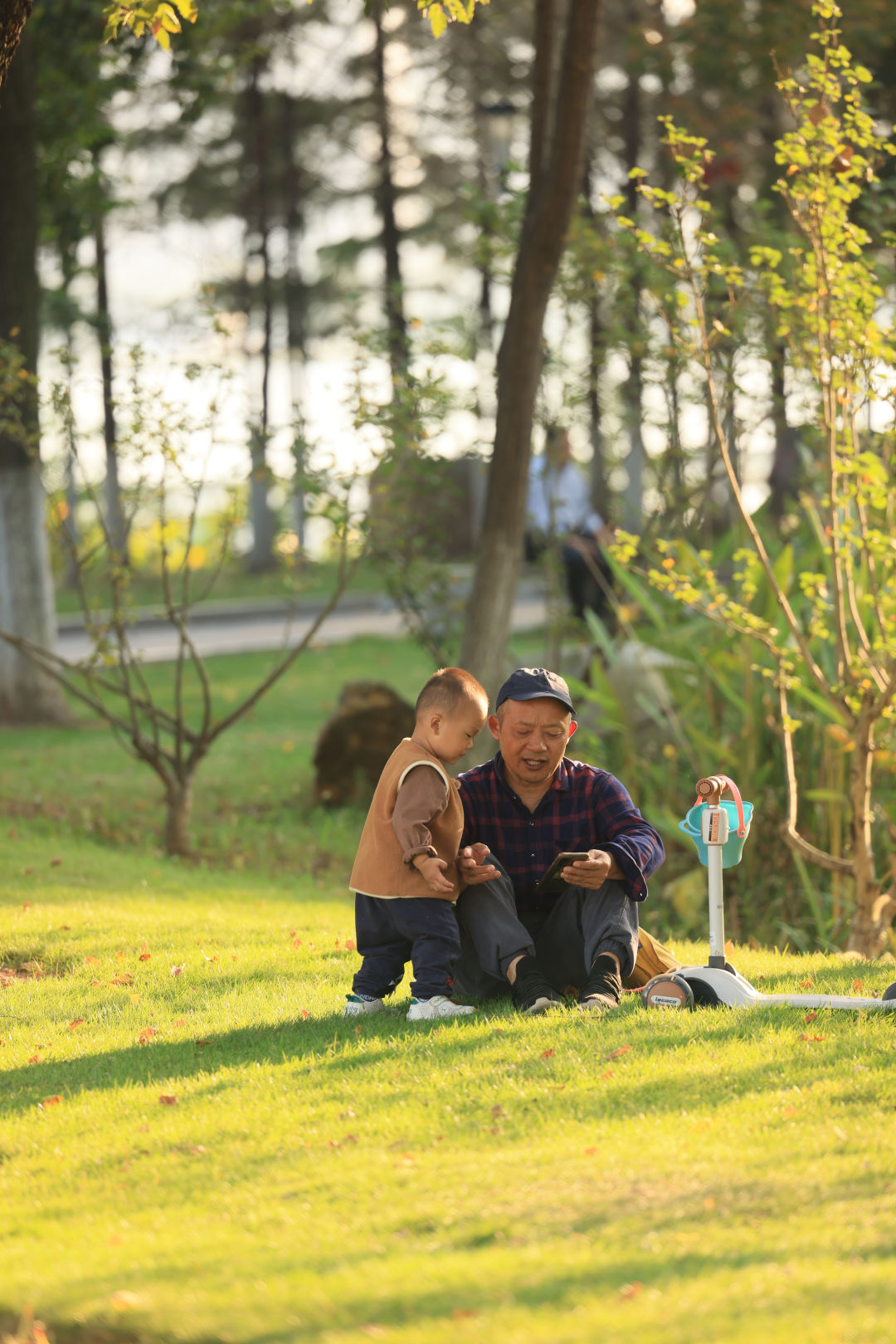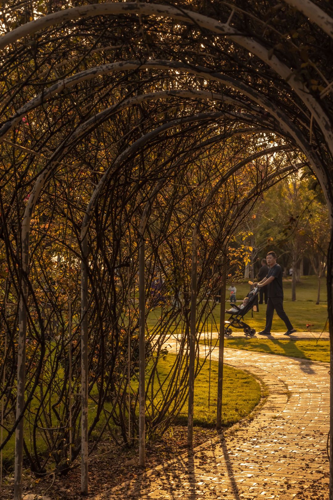 秋天的花卉,或许不如春日那般繁盛,但也让人看了不免心生欢喜。锻炼的行人、唱歌的叔叔阿姨、遛娃的家长,通通都是这片秋色的观赏者。