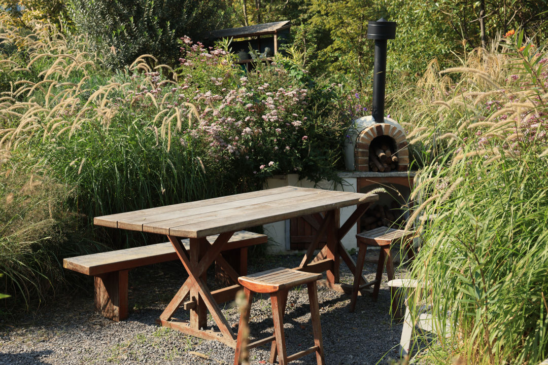 早晨的阳光照在花上,浓郁的秋日渐变色,像极了莫奈花园!从高处俯拍,仿佛跌入秋天的绝美油画里。