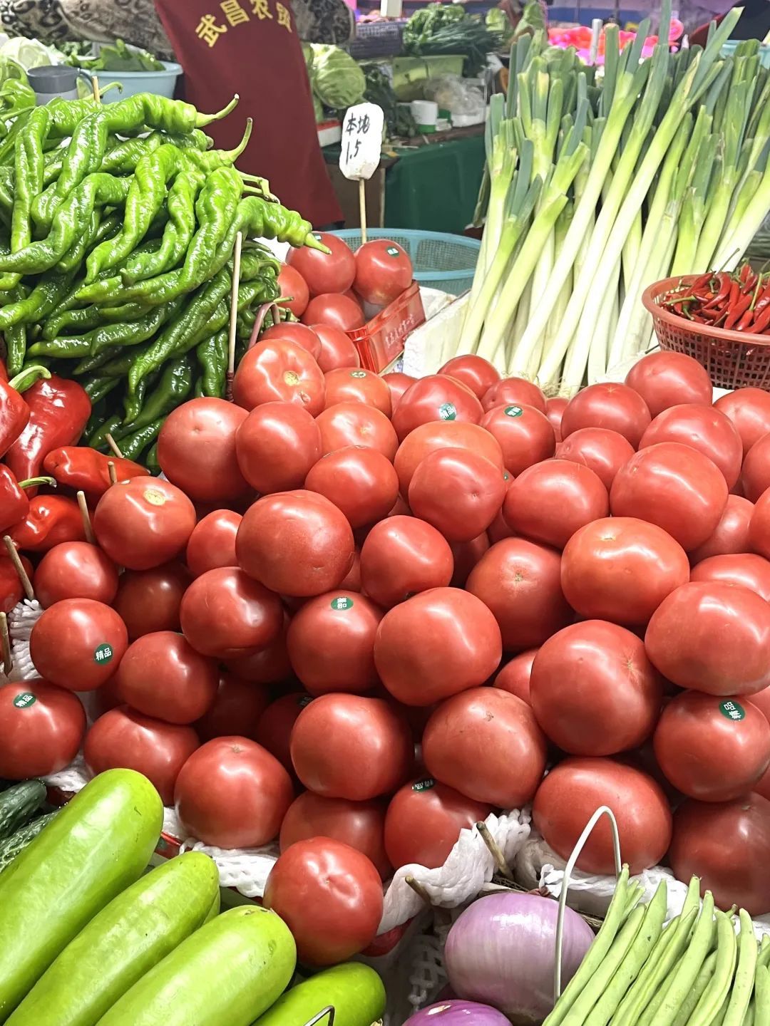 位于新生路的新河菜市场,刚一进门,映入眼帘的是五彩缤纷的食材,红得纯粹、绿得蓬勃、白得温润、青得雅致,各种颜色集结于此。
