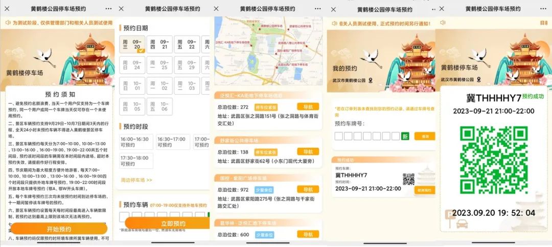 今年中秋国庆长假期间,黄鹤楼景区单日游客突破4万人次,游客量远超往年同一时间段,达到最大承载量的80%,但通过停车预约,景区交通秩序井然有序,一大批游客通过扫码、阅读须知、填写预约时间三个步骤,轻松解决了自驾停车难题。