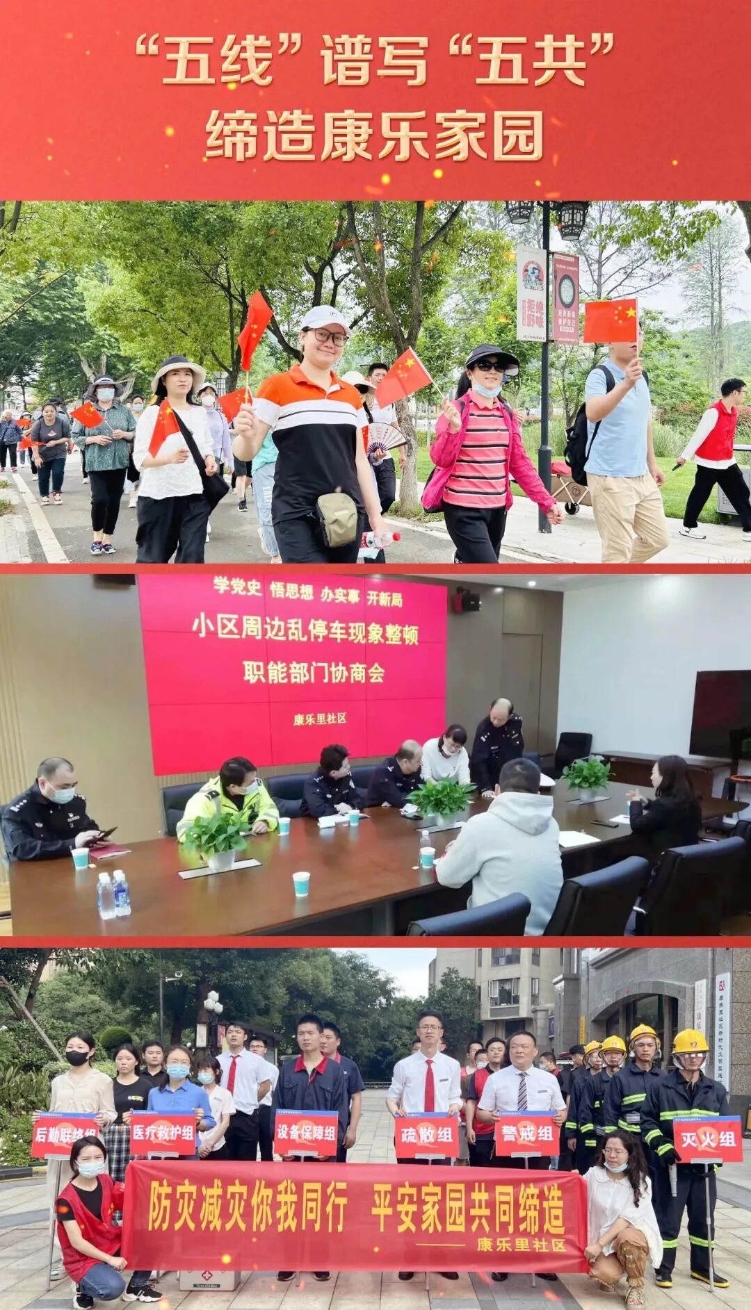 康乐里社区把服务群众作为一切工作的出发点和落脚点。从细、小、实、惠入手,落实好每一项服务举措,积极回应群众热盼,让群众真实体会到新变化新成效。在共察民情中聚民意,在共谋共议中找切口,在共建共管中找方法,切切实实提高居民群众幸福感和获得感。运用“五线”治理新方法谱写好“五共”理念,共同缔造健康快乐家园。