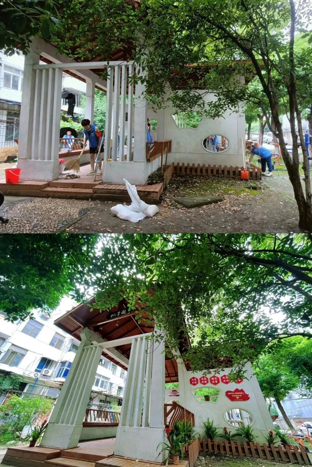 五个“一点”打造小区“微阵地”,激活社区“微治理”。按照共同缔造的理念与方法,探索实施“群众掏一点、居民捐一点、企业献一点、志愿做一点、政府补一点”“五个一点”模式引导居民共建,将河校小区“桃李园”凉亭改造为一处具有多功能的小区公共空间,展现了社区居民共同传承、守护“老历史”“老建筑”的初心。
