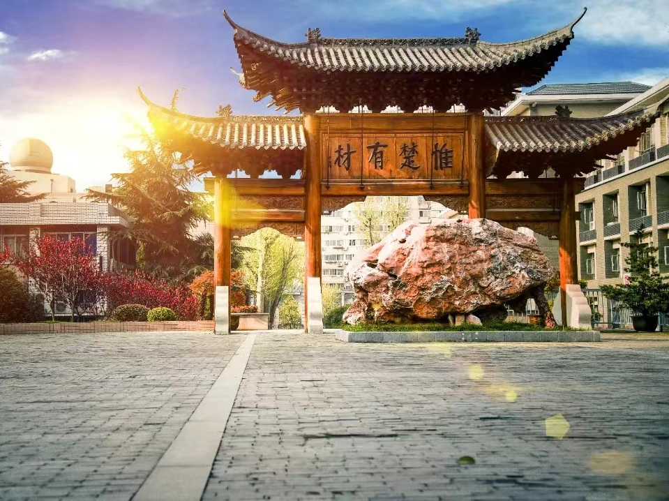 据“省实验”校史介绍,“惟楚有材”木制牌楼高约3.5米、宽约8米,四柱三门,双层飞檐翘角琉璃瓦,1958年倾毁。现立于校内的“惟楚有材”牌坊为1998年重建,字为著名书法家陈义经手书。