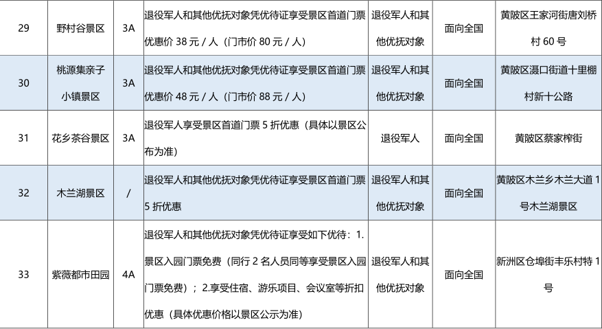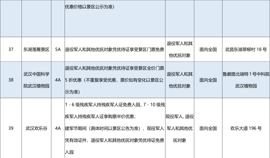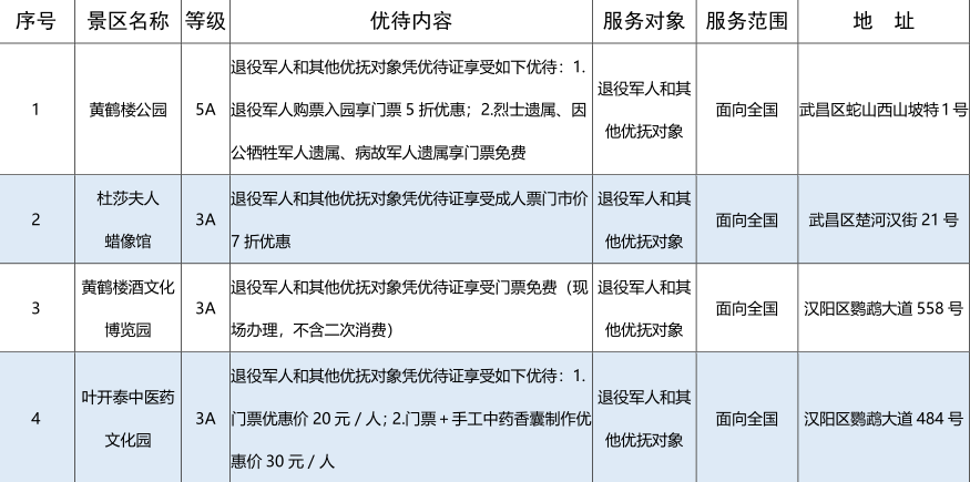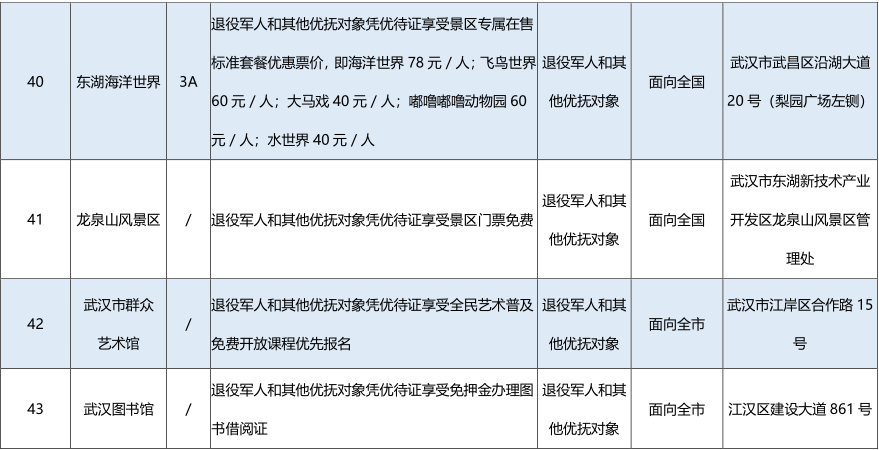 为深入贯彻落实习近平总书记关于退役军人工作的重要指示批示精神,市、区有关部门动员发动我市文化旅游服务单位为广大退役军人和其他优抚对象推出了一批优待服务项目,现予以公布。