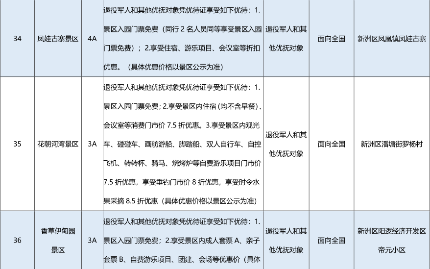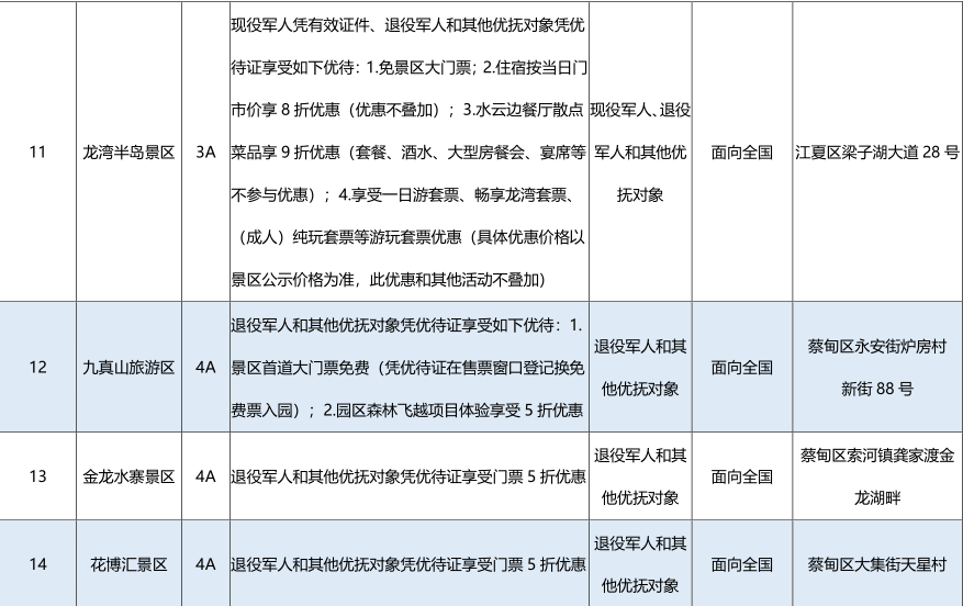 退役军人享受景区首道门票5折优惠(具体以景区公布为准)