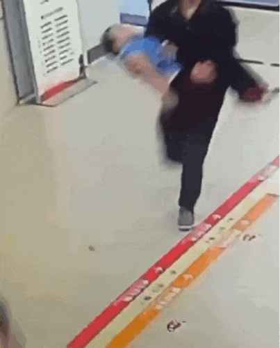 ▲张开平抱着孩子往急救室狂奔(视频截屏)