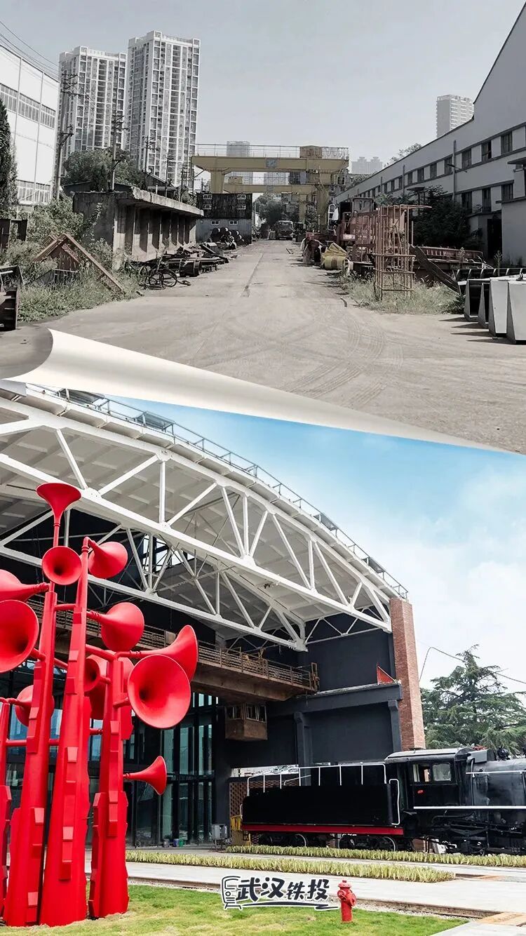 整个车辆段遗留了200多台(件)机械设备,它们被利用到了武昌生态文化长廊和公园里,经过改造后成为新的景观节点。