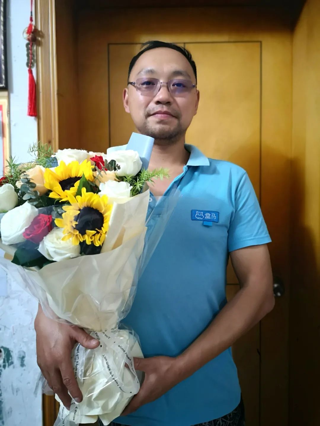 下班回家时捧着一大束花