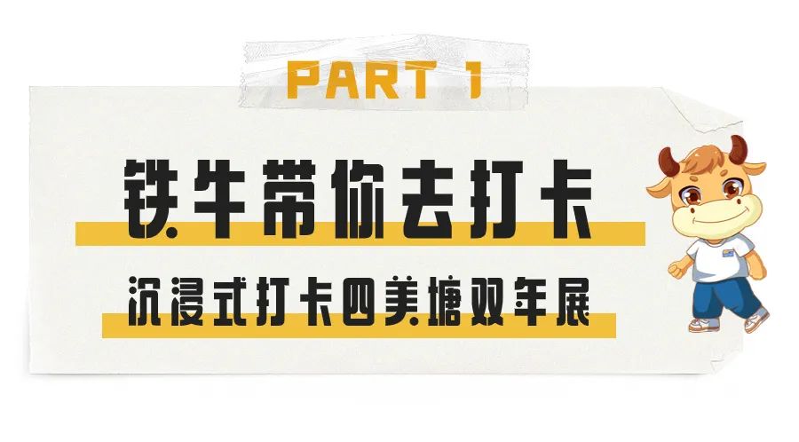双年展「打卡指南」已备好,作为武汉铁投IP铁牛,今天就带你玩转在四美塘文化公园举办的双年展,不止逛展,带你解锁打卡的N种方式。