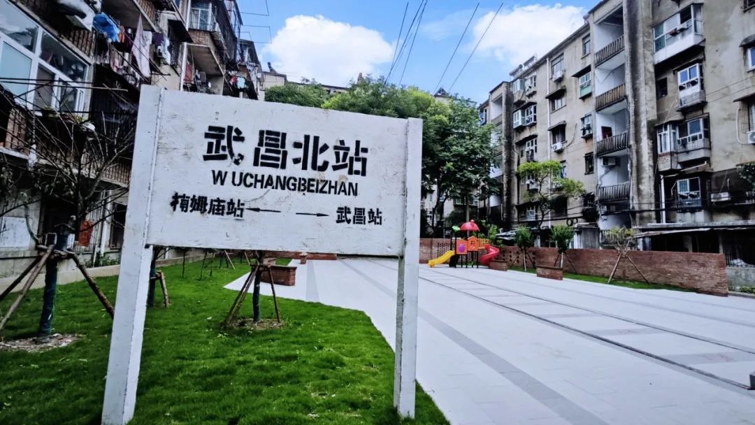 改造初期,社区充分征求居民意见,居民代表全票通过“改造门球场”事项。此后多次与居民群众、下沉单位、共建单位、人大代表、政协委员协商,综合各方意见,最终采纳了居民保留铁路元素、多些绿化、有小朋友活动空间等建议,以镂空红砖做围挡,将老武九北环线拆下来的站牌、铁轨融入广场建设,用“低成本、低风险、广受益”的原则建设“家·粤汉铁路记忆文化广场”。