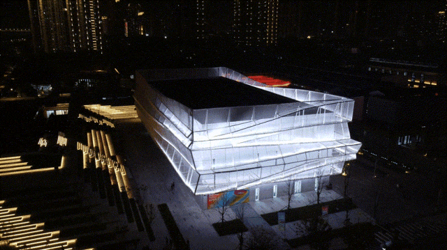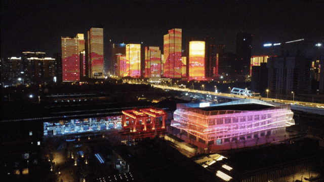 3号馆的外墙采用现代数字光影技术,以“声、光、电”结合的手法,融入艺术表演的方式,通过高科技光影技术打造的城市地标夜游新体验。