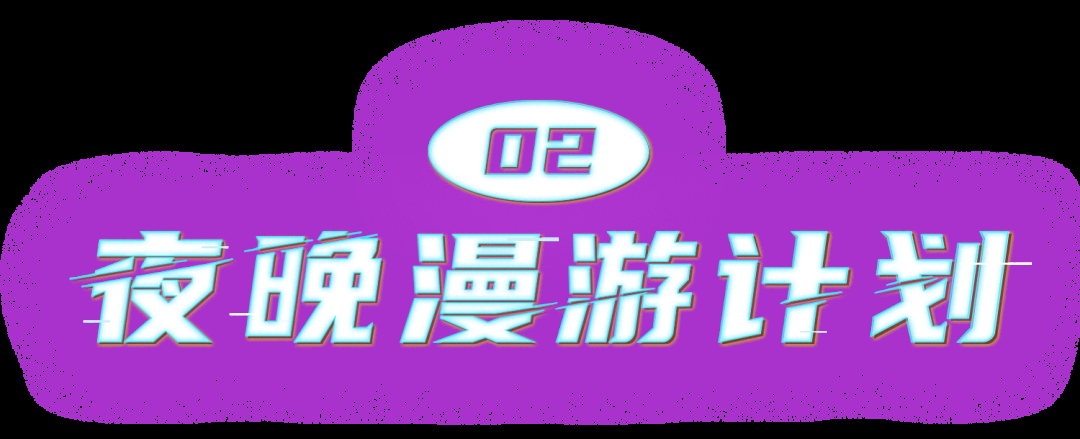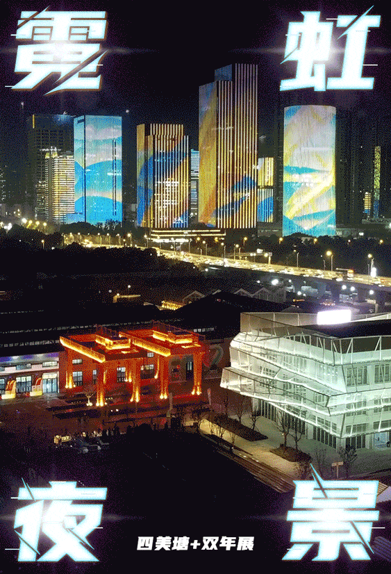 变幻多姿的2号馆,外墙呈规律变幻颜色,白、黄、橘、紫、蓝...一轮一轮闪耀,等待每一位想体验四美塘夜景风情的的打卡者。