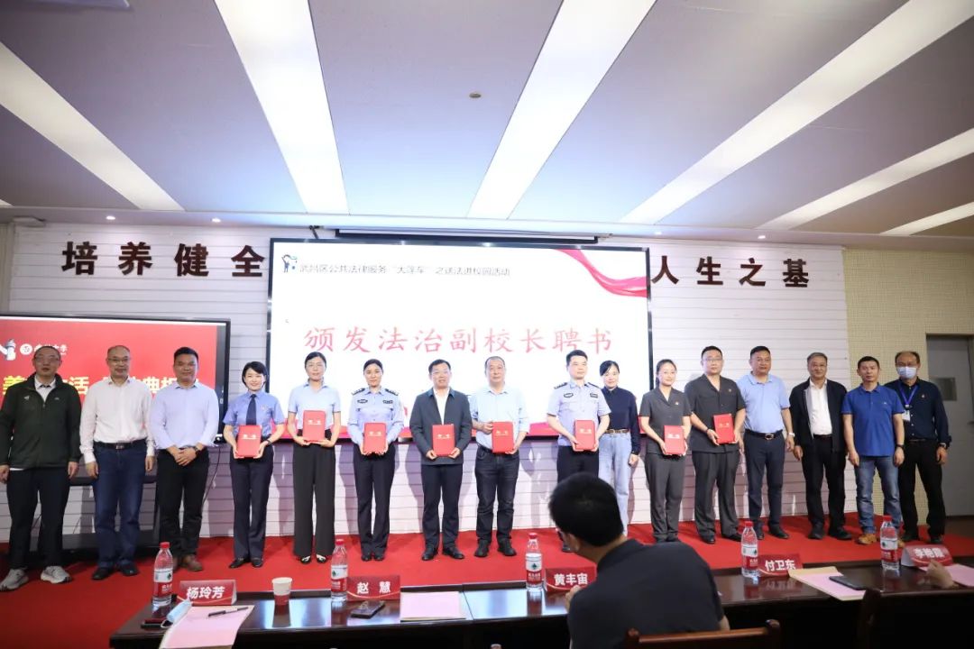 武昌区司法局在武汉中学(初中部)开展中小学法治副校长聘任仪式。8名学校校长向法治副校长代表颁发聘书。区检察院负责人结合青少年实际,讲述民法典中的未成年人权益保护,赢得了学生们的阵阵掌声。武昌区将青少年作为普法重点人群,以青少年维权岗、法治教育基地、主题班会、宪法晨读等多种形式,开展青少年法治教育和实践活动1200余场。依托青少年托管项目,全区各单位深入社区青少年空间开展活动500余场。武昌区司法局水果湖司法所荣获全国青少年维权岗。