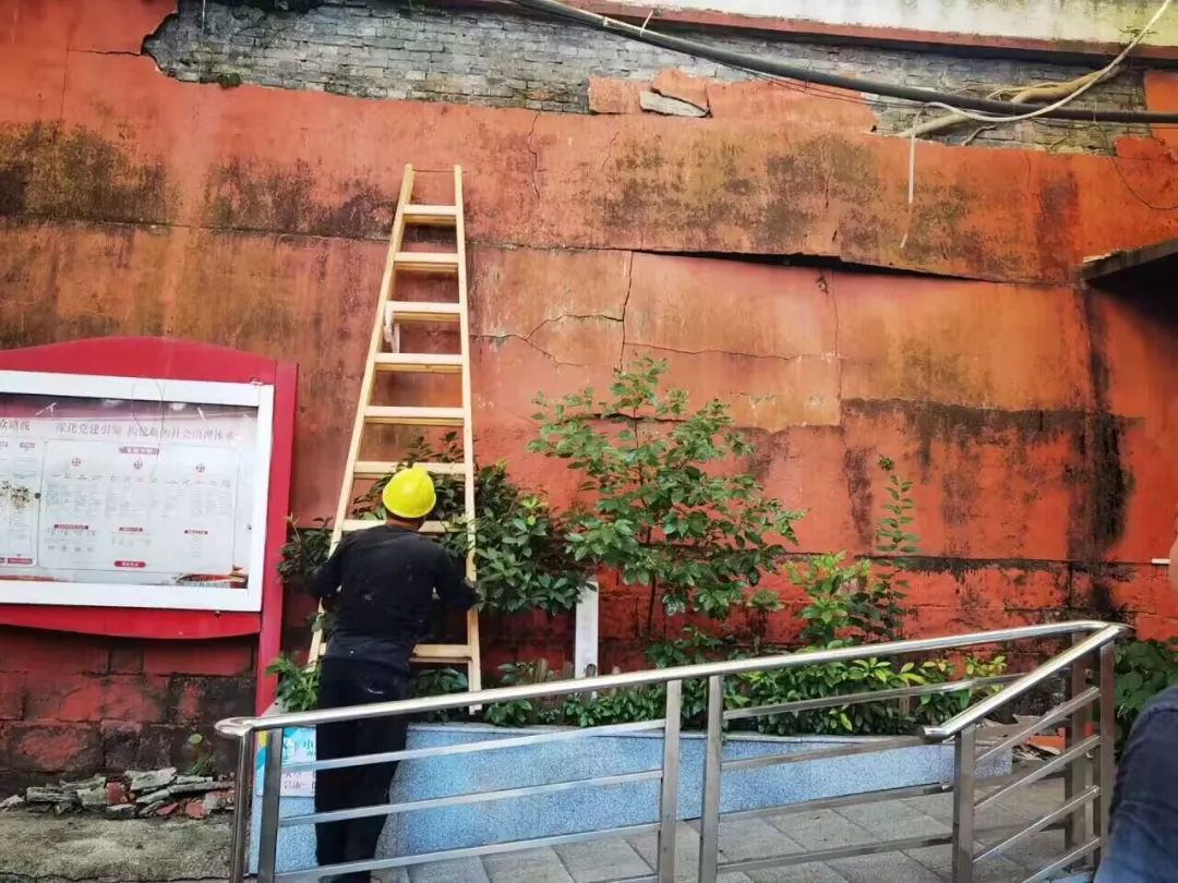 志愿队伍促融合强协作 提升项目建设新成效。为提升工友对社区治理的参与度,社区党委以临时党支部党员为主,集结了六支建设队伍的工友联合成立的“黄帽子”工友巡逻志愿服务队定期对作业区及生活区进行安全巡查,同时常态化参与长江紫阳段的巡江值守中。9月,社区邻里长在日常巡查中发现,位于文昌门18号的张之洞都督府老院墙外由于一根老树藤生长外延导致墙体开裂,不仅影响美观,还存在墙面脱落的安全隐患,邻里长第一时间将事件上报网格员。考虑到情况紧急,社区网格员立即联系到“黄帽子”工友巡逻志愿服务队队员进入文昌门居民区排危。