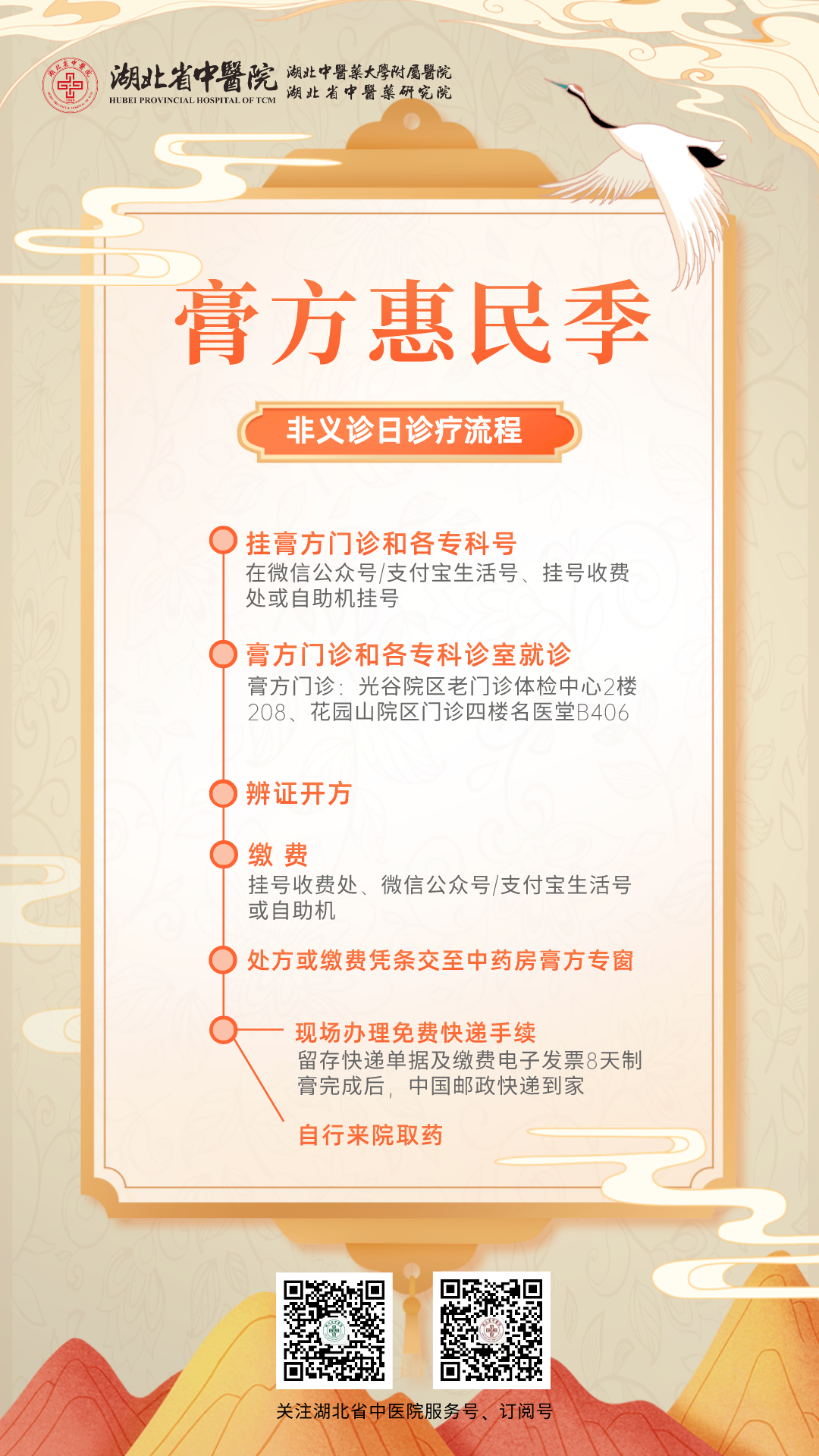 膏方惠民季期间(2023年11月1日至2024年2月4日),湖北省中医院所有一人一方膏方制品均提供免费保价快递到家服务。