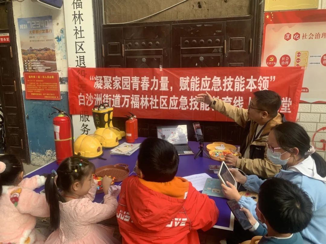 通过定期组织下沉单位、党员干部进社区、进家庭为中小学生普及法律法规,讲授自我保护、自我防范知识,利用周末节假日和寒暑假举办应急救援知识的线上直播科普活动。积极践行“大学生社区实践计划”,依托万福林小学三元书屋,联合湖北财税职业学院信息工程系的青年志愿者们以“微讲堂”的方式,每月结合当月时事或纪念日开展一次“畅游书香林 阅读伴我行”系列活动,例如关于廉洁家风、绿书签、生态环境、国防安全、丰收节等,推进书香社区建设,在此过程中还发动家长参与到社区志愿服务。