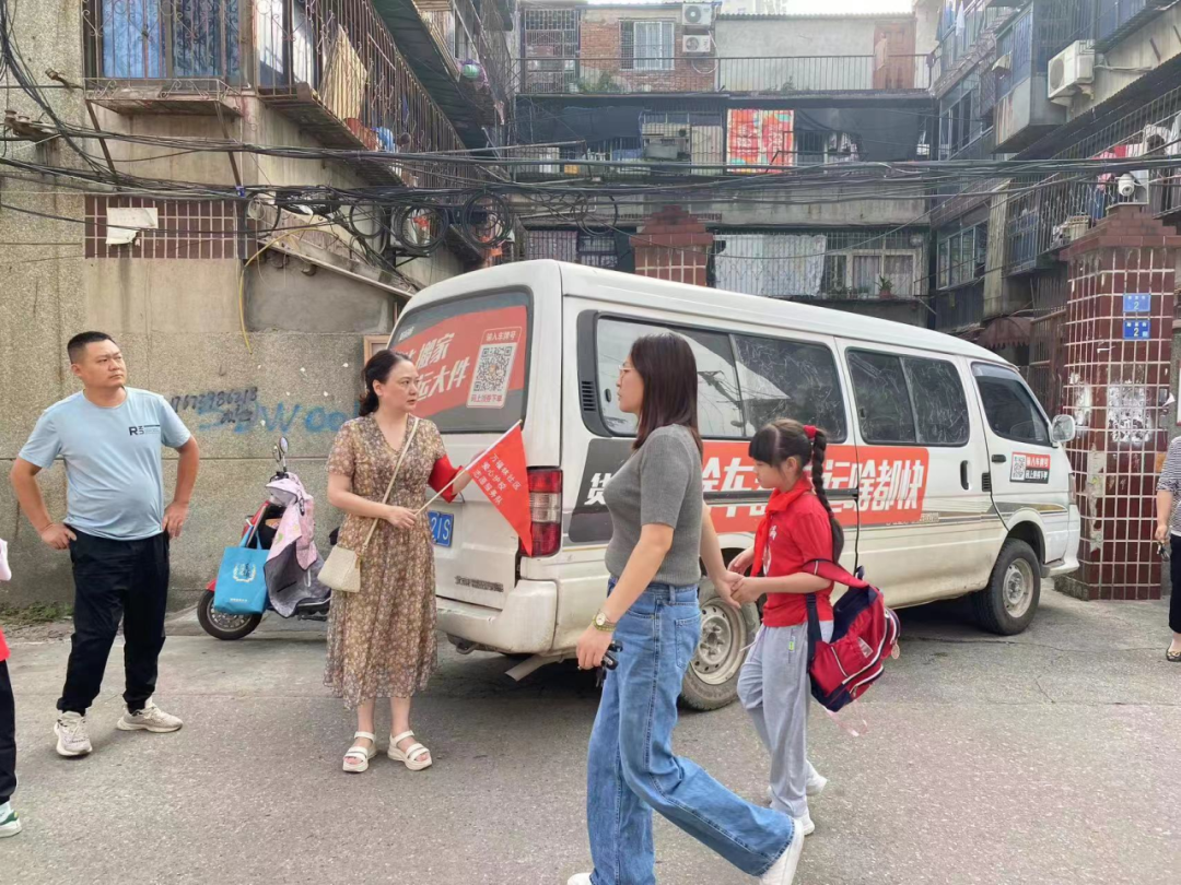 万福林社区以“打通服务群众‘最后一公里’”为目标,通过召开社区党建联席会,共同商议解决办法,万福林小学核酸采样亭改造为“安心护校”志愿服务岗亭,通过招募组建了一支由下沉党员、高校学生和居民志愿者组成的“安心护校”志愿服务队,共同打造红色微驿站志愿服务岗亭阵地,居民志愿者主要对岗亭内外部设施进行看护,保障岗亭完好无损并进行日常后勤保障管理。志愿者们手执小红旗引导学生和家长有序通过;看到没有规范停好的车辆,会走到车边提醒学生们不要靠近;社区通过人大代表在行动、政治协商在一线等活动,链接区建设局为此路段解决了路灯灰暗问题,交管部门通过设置温馨提示牌引导进出车辆在上、放学高峰时间段进行绕行等措施。