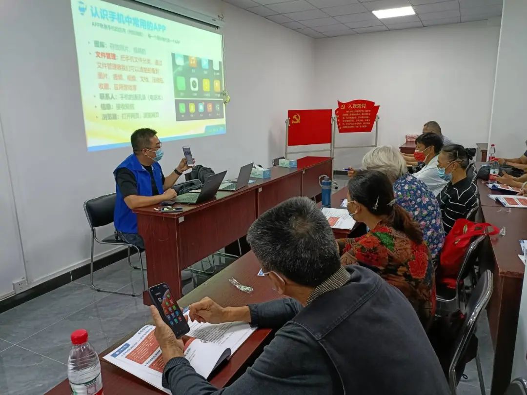▲青年志愿者为老人们介绍手机中常用的各类软件