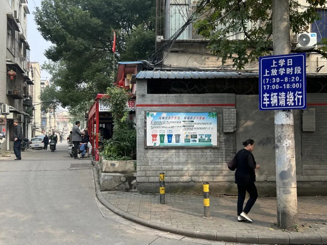 ▲志愿者提醒外来车辆此时正是放学时间,暂时不要进入小巷