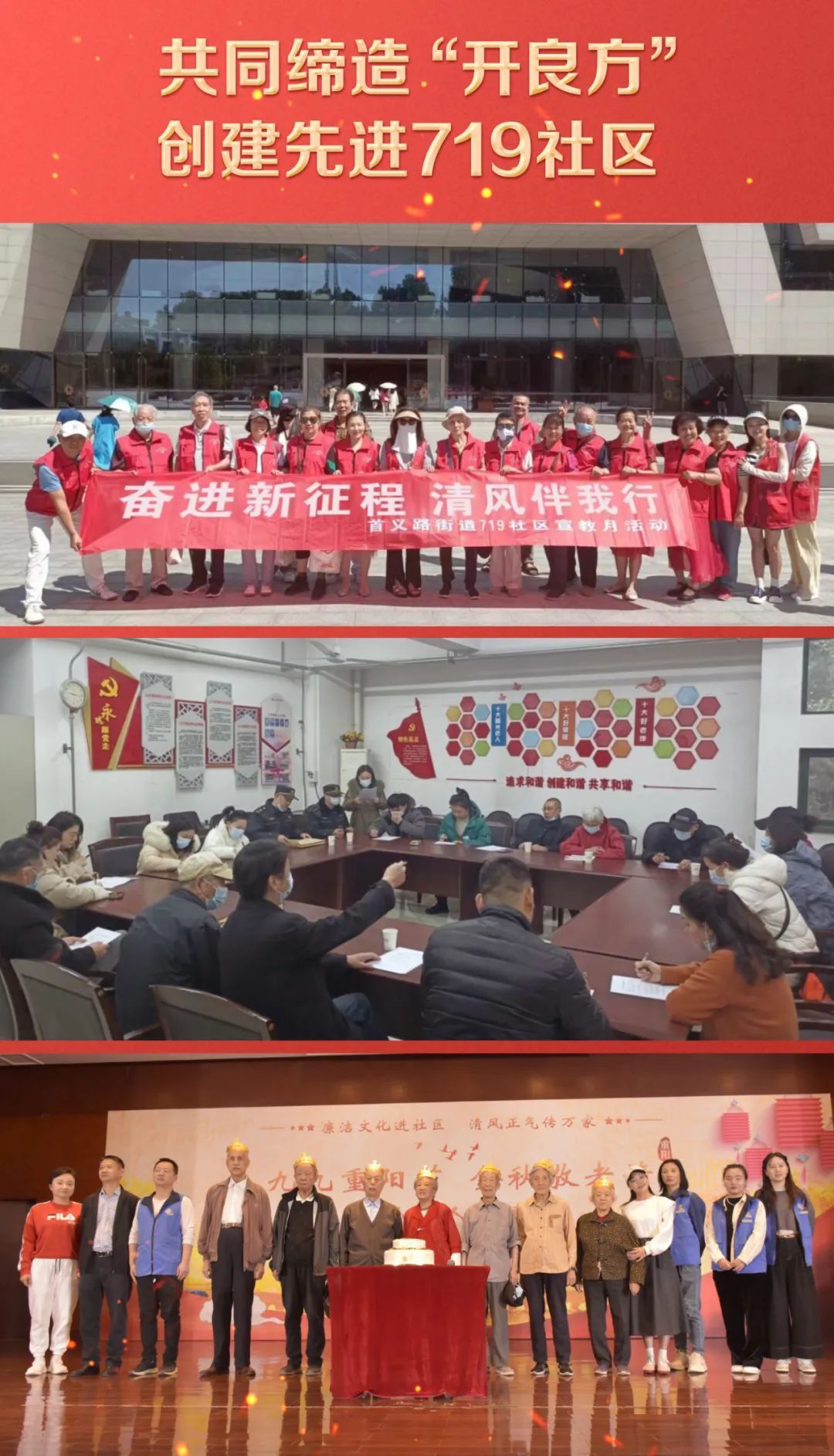 719社区切实把居民群众大大小小的事办好,让社区居民有显著获得感;用心用情用力办好医疗、养老、托幼等民生实事。同时,充分发挥民主党派资源优势,展现民主党派在助推城市经济社会发展中的重要作用,中国致公党湖北省委员会与社区共同建设“健康社区”。中国致公党湖北省委员会组织医院专家在719社区开展义诊活动,每半年请医学专家至少坐诊一次,每次半个工作日;另外还定期在社区开展知识讲座,内容包括医疗、法律、心理咨询、传统文化等,共建活动惠及全体社区居民,成果由居民共享。