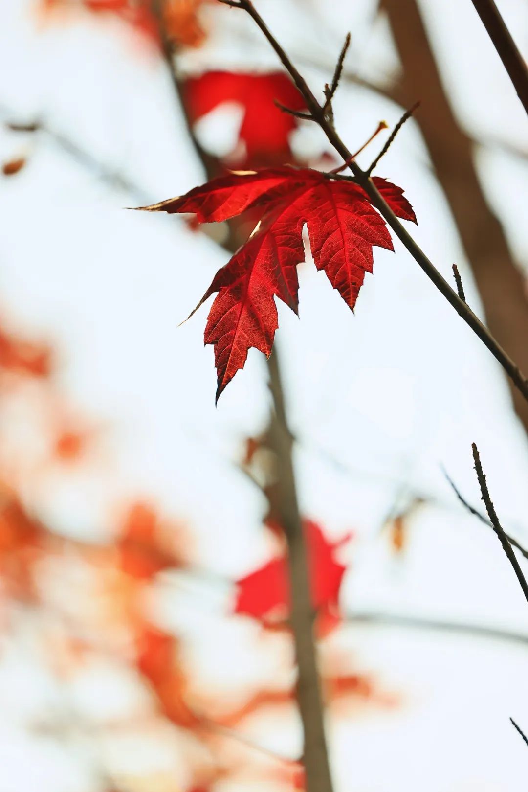 几片红叶孤零零挂地在枝头,宣告冬的来临。