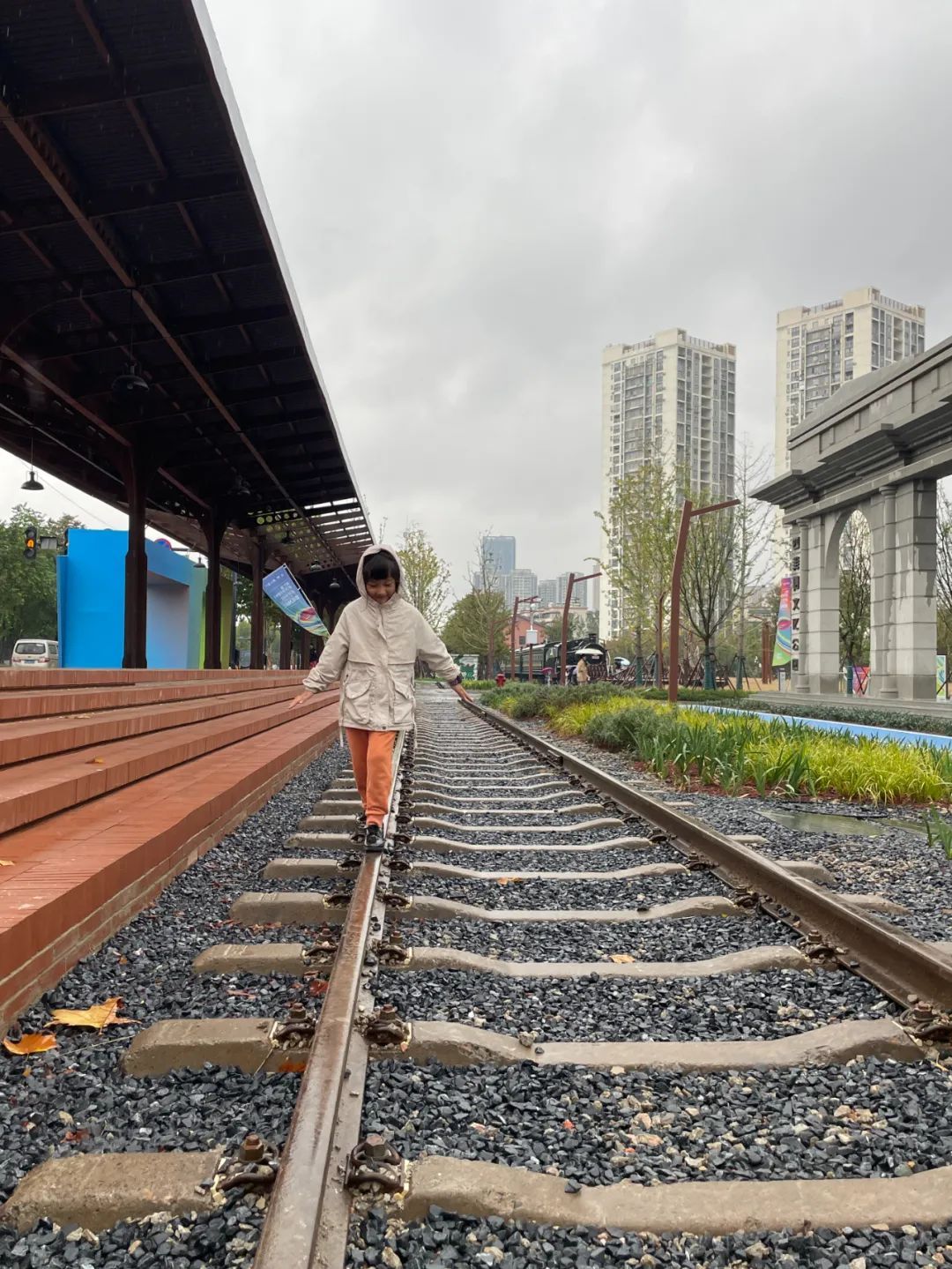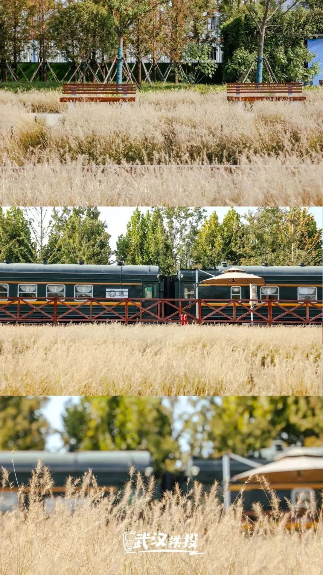 徐家棚车站如今已经焕然一新,改造为四美塘文化公园的月台入口,公园以铁路为具象载体,以城市历史为底色,将在充分保护历史遗存的基础上,将工业保留建筑与周边建筑一并改造,成为以铁路文化为主题的城市核心区生态活力中心。