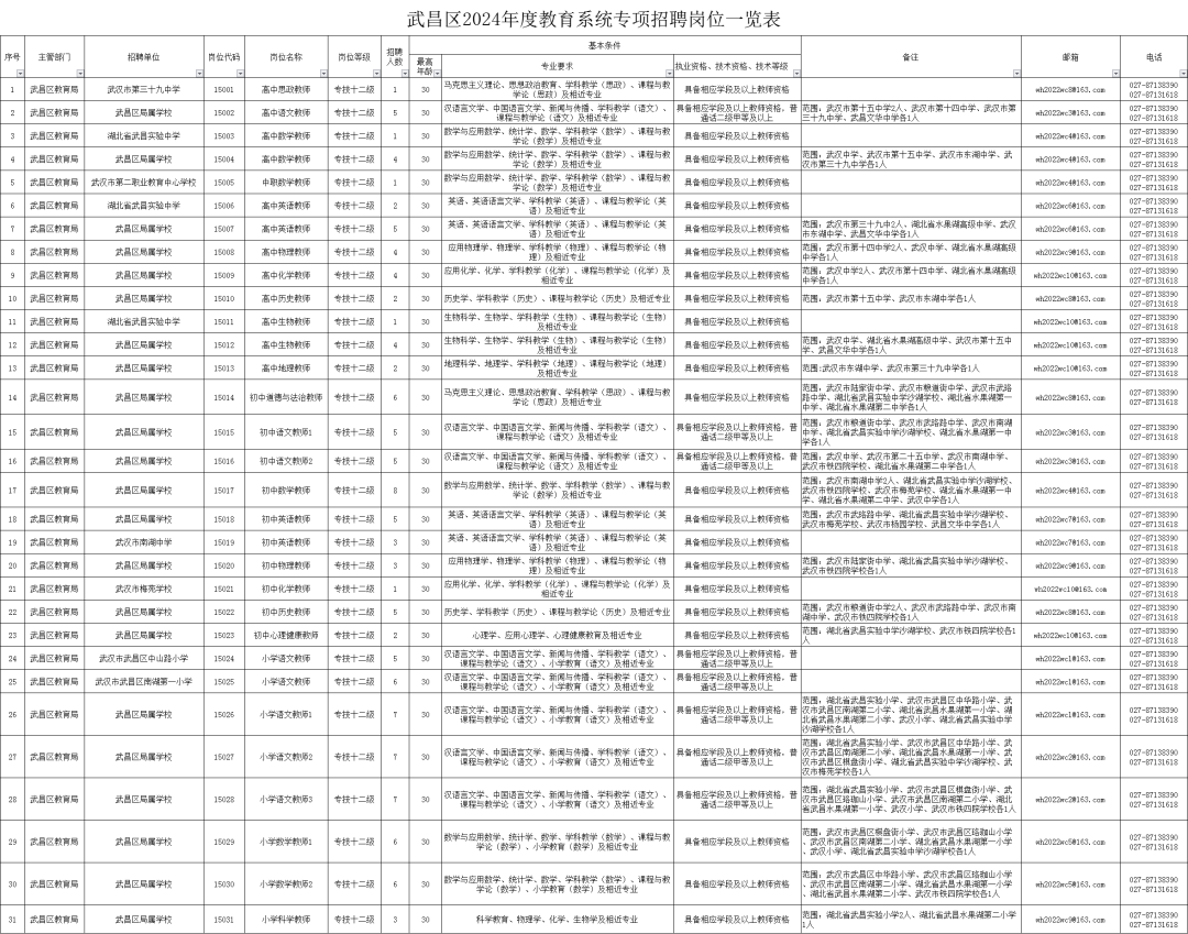 附件1:武汉市2024年度教育系统专项招聘岗位一览表