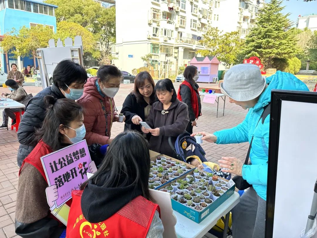每个月15号左右的周末,青年志愿者组织开展社区品牌公益项目“乐淘淘”公益集市,售卖所得的10%捐入社区基金,截至目前,已有50多组亲子家庭加入到“爱心摊主”的队伍,共同为志愿服务积分兑换和社区微改造筹款,共建和谐怡园。