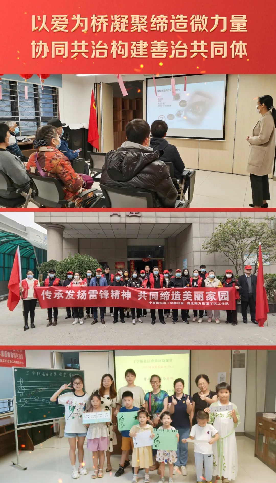 今年以来,丁字桥社区在摸排下沉党员特长的基础上,根据居民实际需求,精准发力,合理调整下沉党员服务岗位、细化下沉服务范畴,并利用“i武汉i家园”系统发布相关信息,动员、组织下沉党员主动认领服务岗位,持续深化“三认一创”。目前共组建医疗、教育、法务、文化宣传等“3+N”专业服务团4个,小区邻里服务队6个,190余名下沉党员常态化开展政策法规宣传、困难人群帮扶、消防安全检查、清洁家园等特色服务活动。