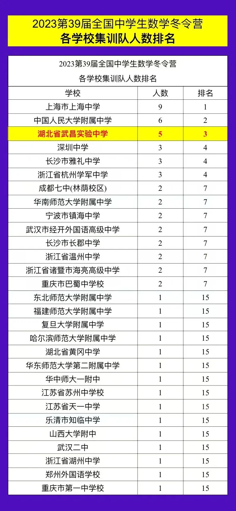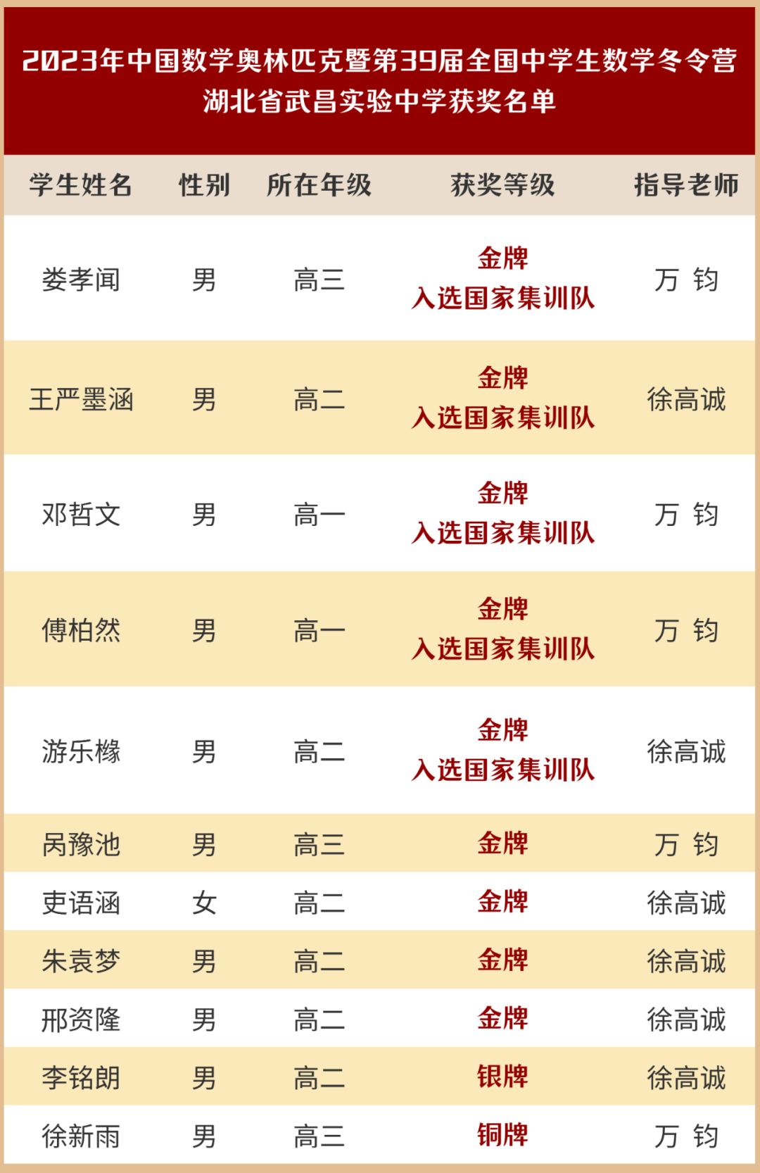 5国集9金1银1铜!热烈祝贺湖北省武昌实验中学数学竞赛团队在2023年中国数学奥林匹克暨第39届全国中学生数学冬令营中取得优异成绩: