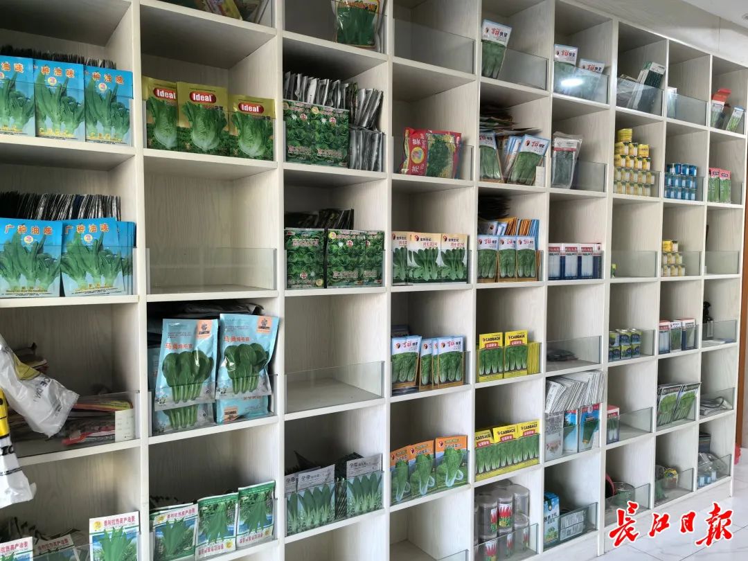 从武昌火车站地铁D1口出来就是大东门种子市场。一条几百米的长街聚集了80多家种子企业的门店。店内,白菜、西红柿、辣椒等各类种子,有的装在袋子里,有的装在罐子里,整齐排列在货架上向顾客展示。店外,一个个小推车上码放着多箱种子,工作人员正在帮客户装车。