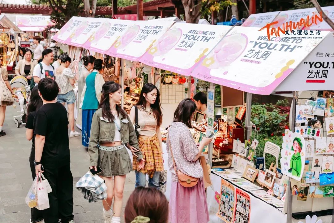 除了商家们的自发创新,街区运营方——昙华林公司还推出诸多线下活动,例如2023年国庆期间举办的“YOU.TH”艺术周,汇集了市集、策展、游乐、WORKSHOP等各种新奇有趣的活动,节日氛围拉满,吸引四面八方涌来的游客们在此观花打卡、赶集会友、古城寻迹。