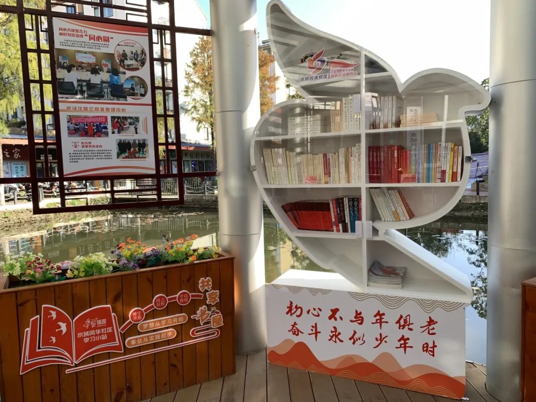 南湖街道水域风华社区辖区总面积0.35平方公里,由4个物业管理型小区组成,社区党委下设11个小区党支部和2个“两新”党支部,共有自管党员470人,下沉党员650人。社区坚持以党委为核心,凝聚社区党员、志愿者、下沉单位、社会组织等多方力量,推动打造集学习强国户外学习小站、红色议事厅、红色书屋、下沉单位政策咨询服务岗、志愿服务积分兑换阵地、高校团支部实践基地、红色手工作品展厅为一体的休闲凉亭就是“益心共创亭”,大家用共同缔造的生动实践,打造出家门口的“微幸福”。
