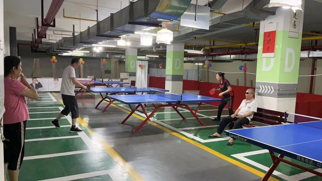 星星社区群建星城小区属于还建小区,小区面积不大,住户却很多,居民文体活动空间极度缺乏,负一楼原本的规划是电动自行车停车场,但由于负一楼楼梯较陡,电动车出行不易,从而一直闲置。为此,居民将闲置的负一楼部分空间“变身”为居民文体活动空间,目前已摆放5张居民自筹的乒乓球桌,墙上张贴各种冠军球员照片,营造浓浓的运动氛围。活动空间的开放受到小区不少“球友”居民的好评。为了更好地满足居民的需求,社区积极与下沉单位、共建单位联系,计划联合打造活动项目更丰富多样的文体空间,现阶段与下沉单位省发改委沟通,后续将为该空间增设乒乓球桌、象棋桌、休闲桌椅等文体设施,以供居民进行健身锻炼、休闲等活动。