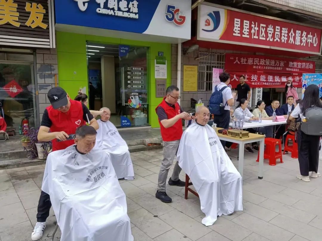 星星社区现有65岁以上老人900余人,其中80岁以上高龄老人185人,社区依托老年服务机构开展系列敬老爱老服务活动,将磨刀、修伞、健康义诊等多项便民活动办到居民家门前,下沉单位省人社厅发挥资源优势,为志愿服务活动项目“添砖加瓦”,开展“人社惠民政策进万家”政策宣讲活动,专业人员现场为居民解答就业政策的相关问题,举办“人社技能便民服务进社区”活动,为辖区居民提供理发等服务。