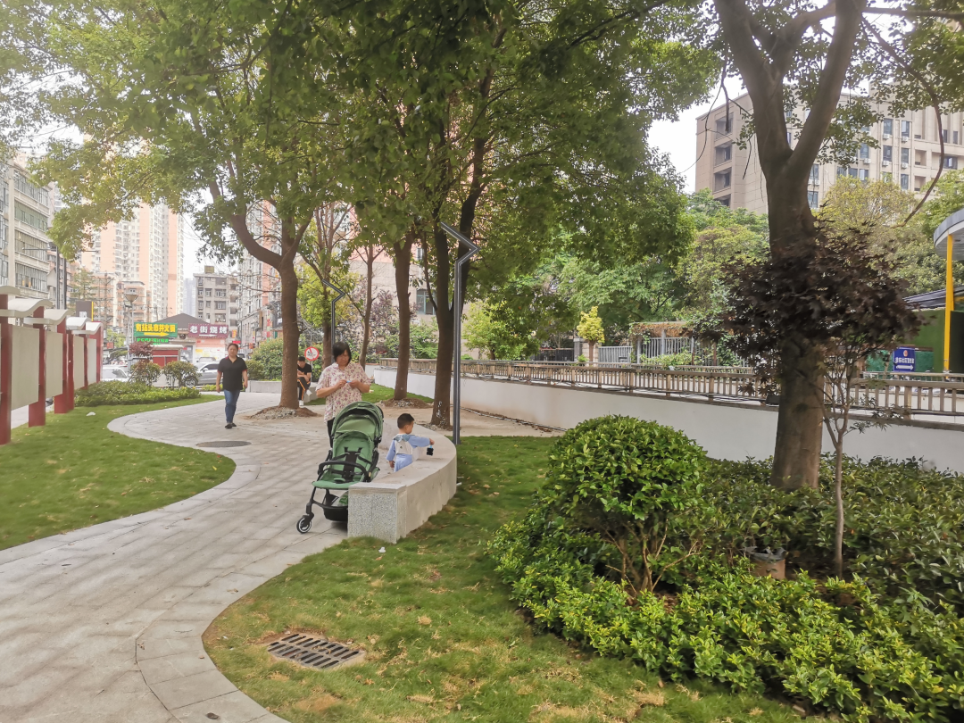 “绿树成荫,小路幽静,长凳环绕,现在带着我孙子在家附近玩耍有好去处咯。”徐东社区居民赵奶奶带着家里小宝在徐东共同缔造口袋公园玩耍嬉戏,休憩纳凉,感叹数月前这里还是一片荒地,现在已经变成了充满幸福感的一角。