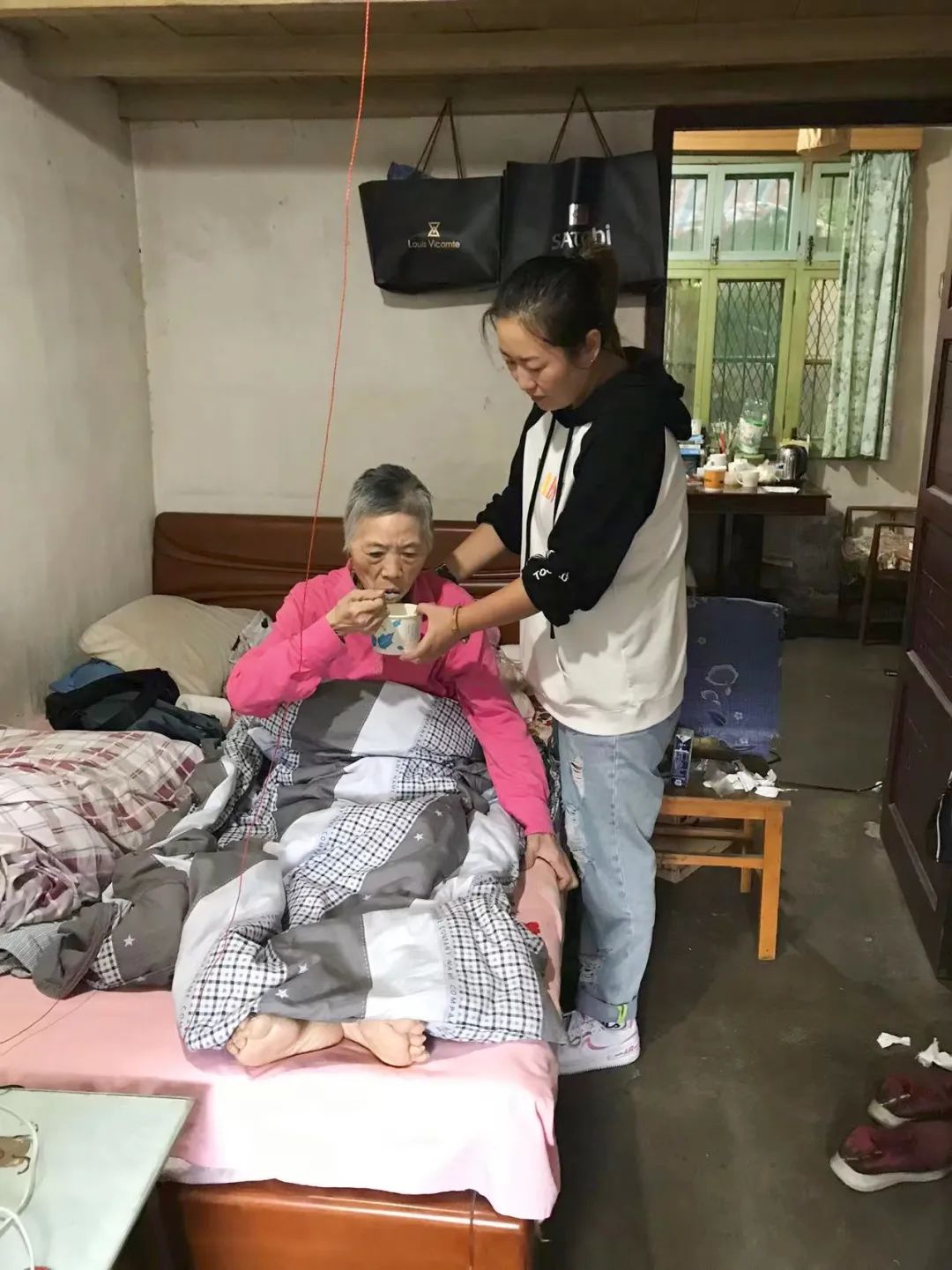 ▲热心居民照顾杜婆婆