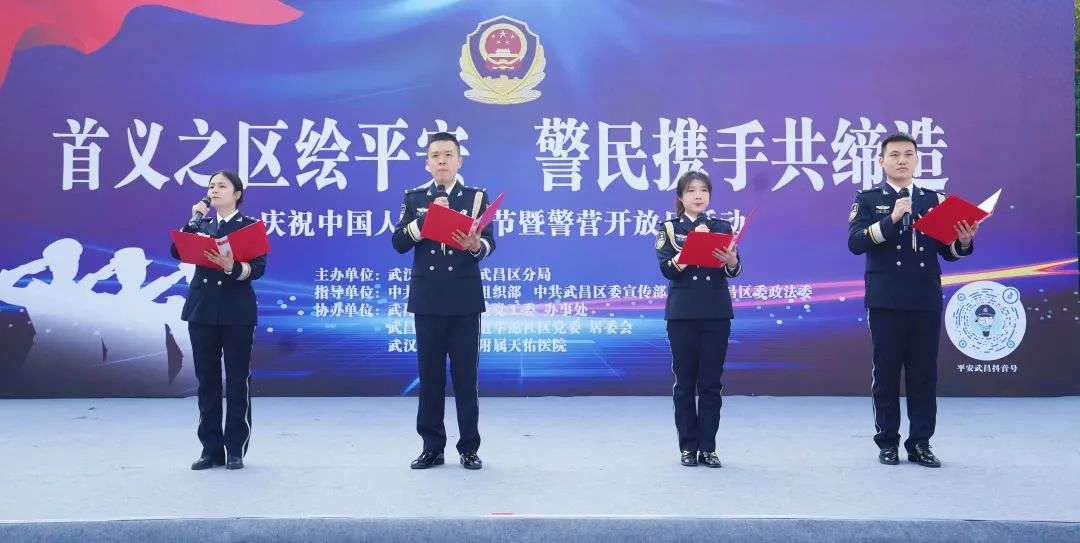 在第四个“中国人民警察节”到来之际,武汉市公安局武昌区分局走进华锦社区举办“首义之区绘平安 警民携手共缔造”警营开放日活动,并邀请辖区“两代表一委员”、企事业代表、优秀治安志愿者以及社区居民一起欢度节日。活动现场设有舞台节目表演区、互动体验区、便民服务区等区域,吸引了不少市民群众前来参与。