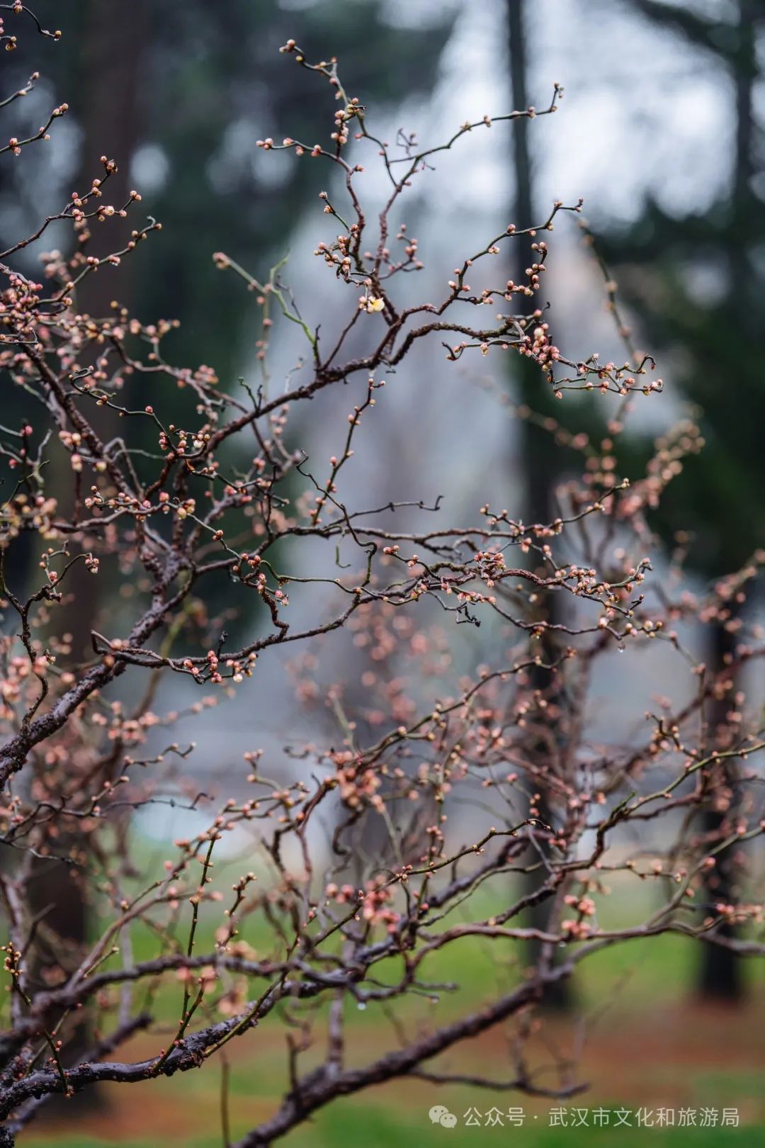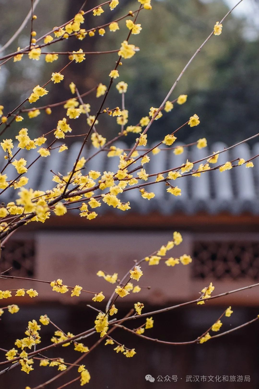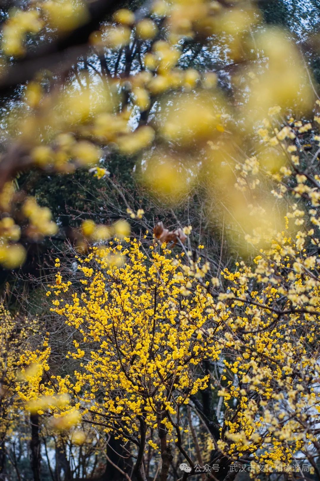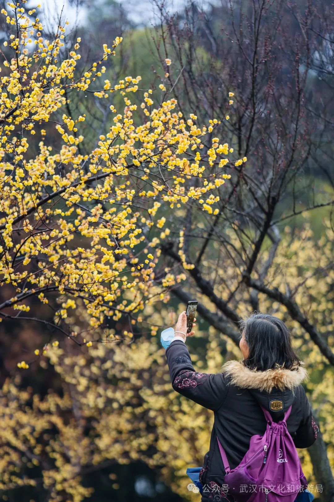 目前,东湖梅园园区内千株蜡梅绽放,正式进入观赏期。武汉市市花,梅花还处于含苞待放状态,预计2月初进入最佳观赏期。