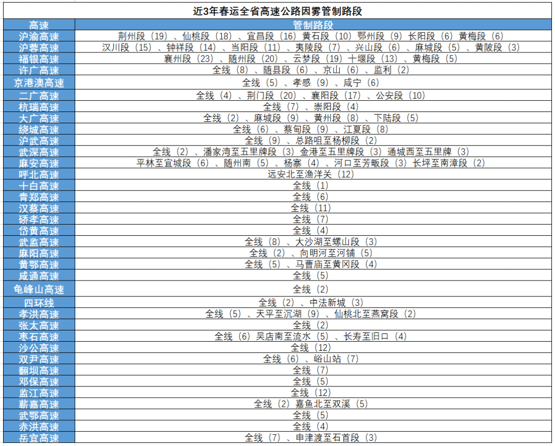 沪渝高速巴东、长阳、黄石、仙桃、荆州段,沪蓉高速兴山、汉川、夷陵、钟祥段,许广高速监利段,大广高速下陆段,杭瑞高速阳新段,京港澳高速孝感段,福银高速云梦段拥堵风险较高。