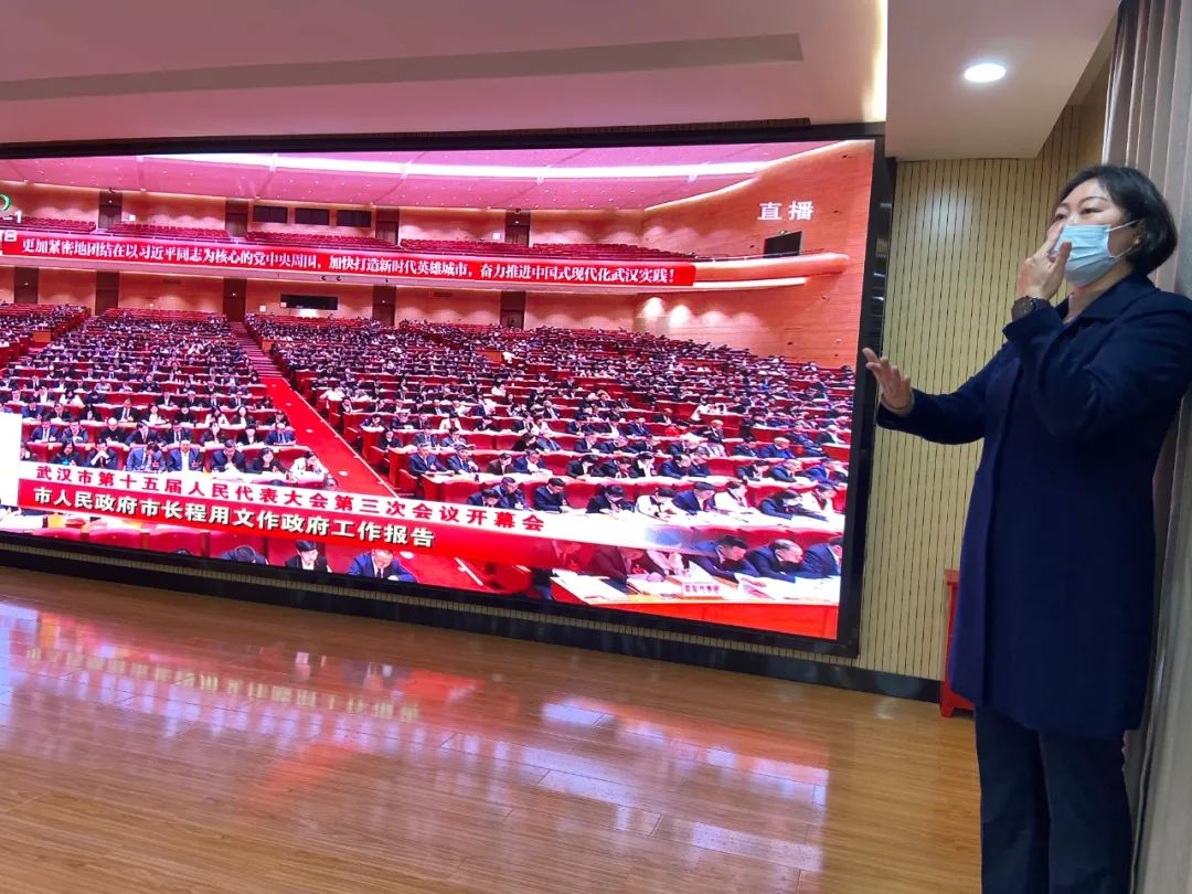 开幕会同步进行手语播报,对此,区聋人协会主席魏尚茹深有感触地说:“从2020年起,武汉市两会开幕式电视直播增设手语播报窗口,我们每次组织聋人朋友集中观看,大家都倍感温暖。我觉得‘窗口’虽小但意义重大,能让听力障碍人士更好地了解会议内容,参与政治生活,表达自己的意见和诉求。这不仅有助于提高残疾人的政治参与度,还有助于增进社会各界对残疾人的了解和关注”。