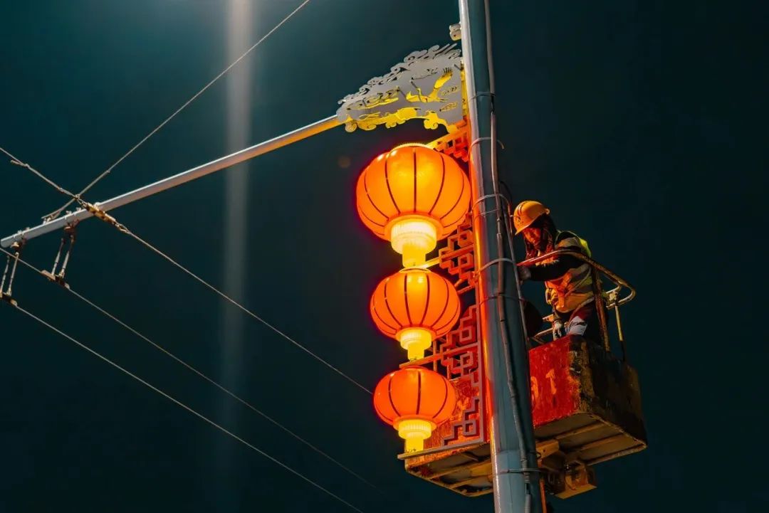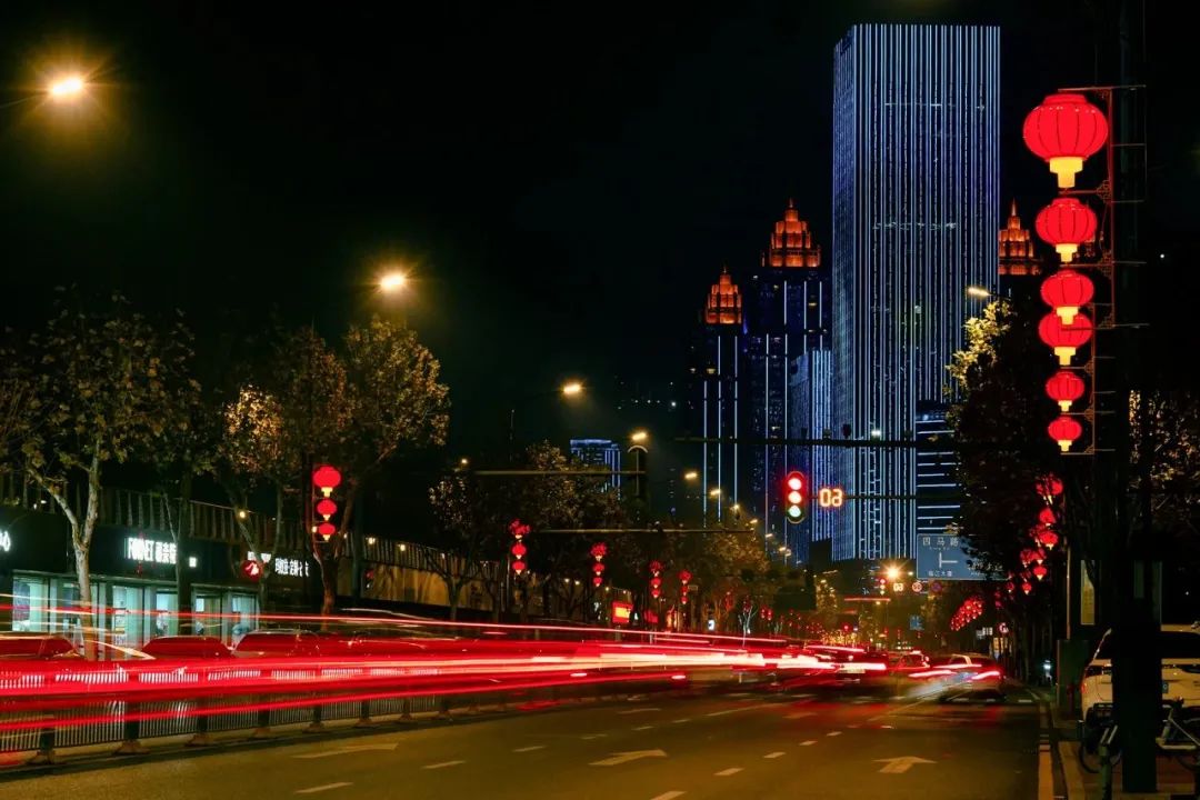 临江大道,道路两侧的红灯笼以最好的姿态迎接着最重要的节日,流光溢彩间弥漫着浓浓的年味。