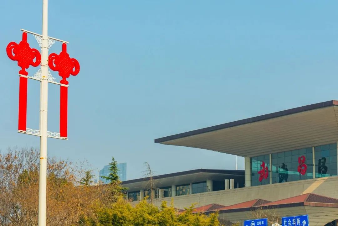 武昌火车站前硕大的中国结,一缕缕红丝交织着万千个祝福,迎来送往间,守护这场与亲人年终的相逢。