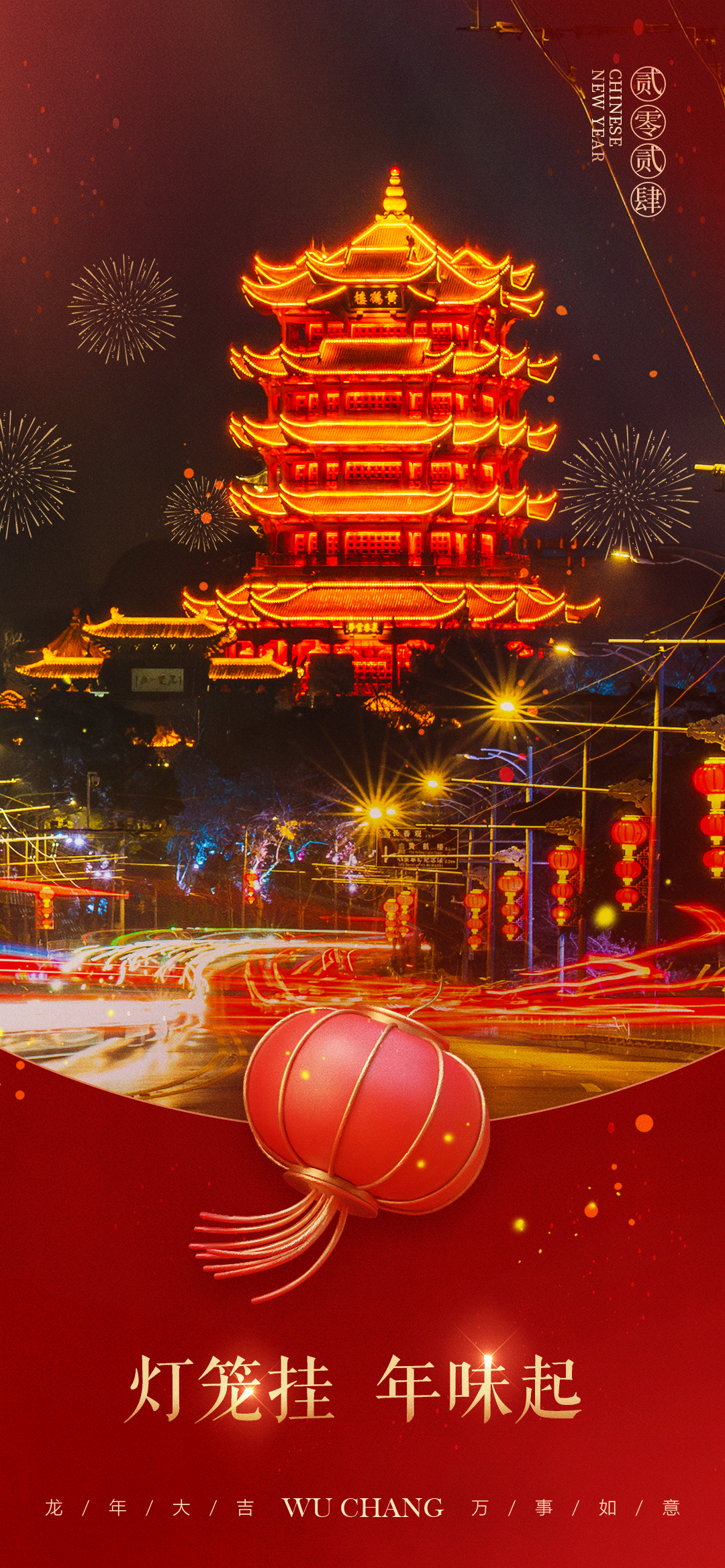 长江大桥,黄鹤之巅,一串串大红灯笼高高挂起,不仅为春节增添了浓浓的色彩,也寓意着人们对美好生活的期盼。