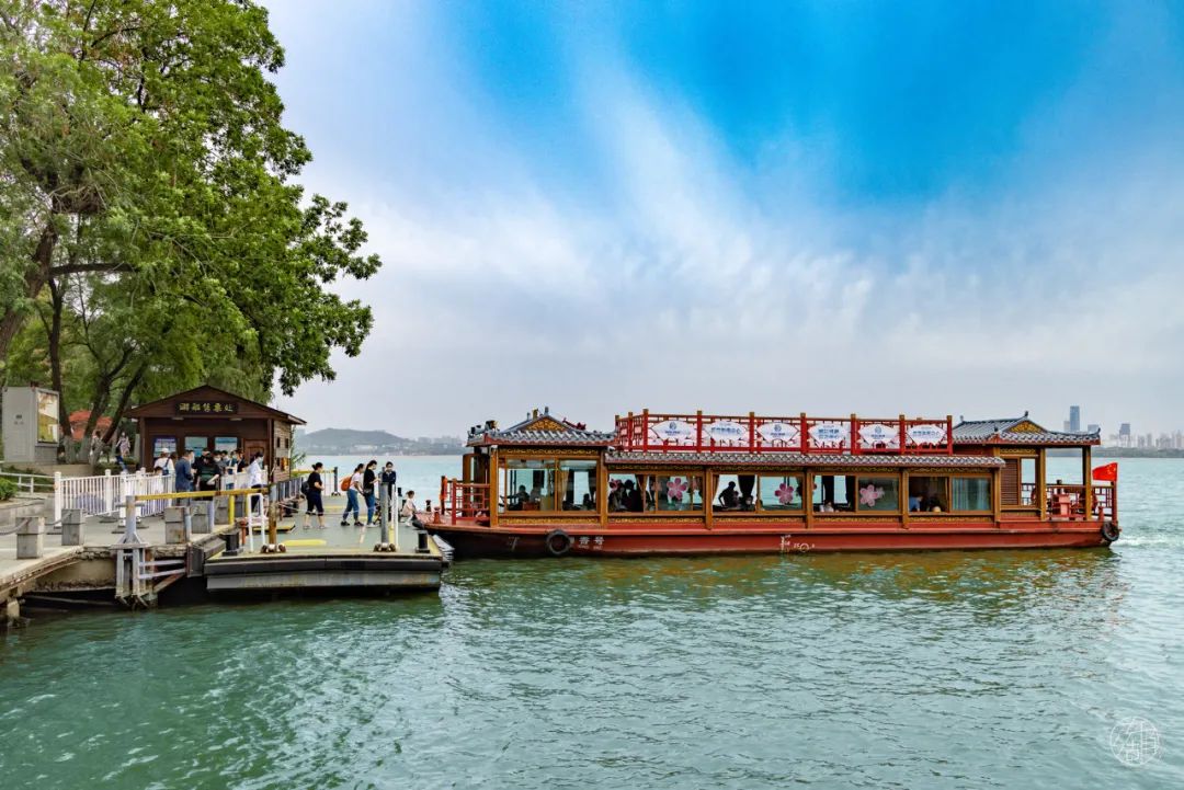 在33万平方公里水域面积的东湖上,乘船悠悠直抵湖心,将东湖绝美风光尽收眼底,近可观湖水翻涌,远可望湖山草木,20分钟的船程,远离湖岸人潮,静享浮生半日闲。