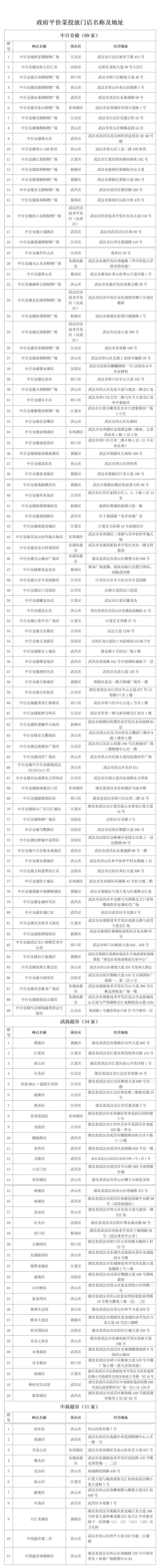 政府平价菜投放门店名称及地址