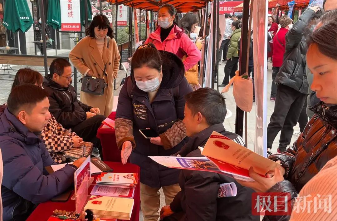 2月19日是节后上班第二天,武昌区昙华林泛悦汇广场热闹喧哗,武昌区今年首场大型招聘会在这里举行,这也标志着武昌区“春风送岗促就业,精准服务助发展”2024年“春风行动”招聘会全面展开。