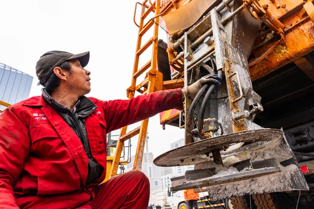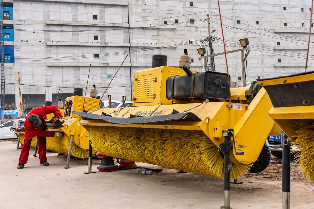 19日上午在团结路停保场,武昌城管二桥清洁队便组织环卫人员将撒布机全部填装好融雪剂,确保在道路结冰时能够及时进行处理。同时,清洁队还将雪滚车及铲雪车全部进行维保后的最后检查,确保新一轮风雪来袭时,这些重要设备能够随时上场,为城市道路的畅通和安全提供有力保障。