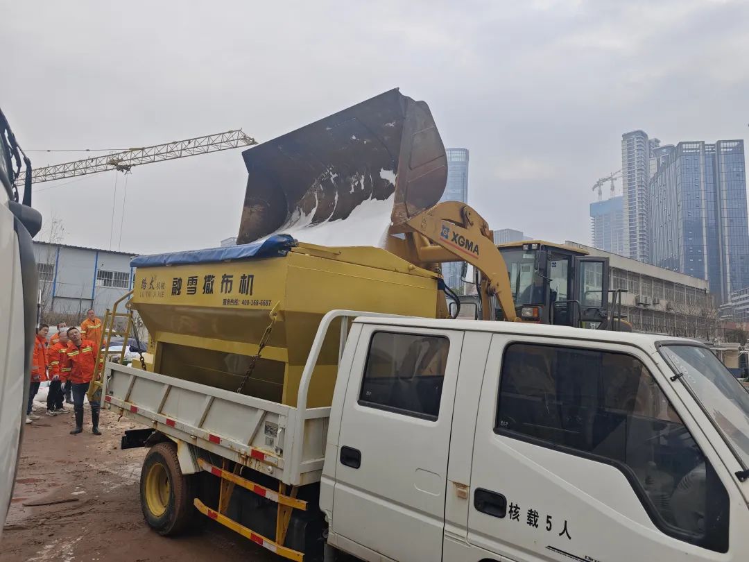 武昌区城管执法局按照计划在城市主干道、重点保障点位以及天桥、隧道等易结冰积雪路段提前发放融雪物资,有备无患。武昌区各街道部门也迅速行动,提前储备融雪剂、推雪板、铁锹、草垫麻袋、手套等应急物资,同时广泛动员社区、企事业单位、物业公司、“门前三包”单位参与人行道铲雪除冰工作,形成合力共同应对此轮低温雨雪冰冻天气。